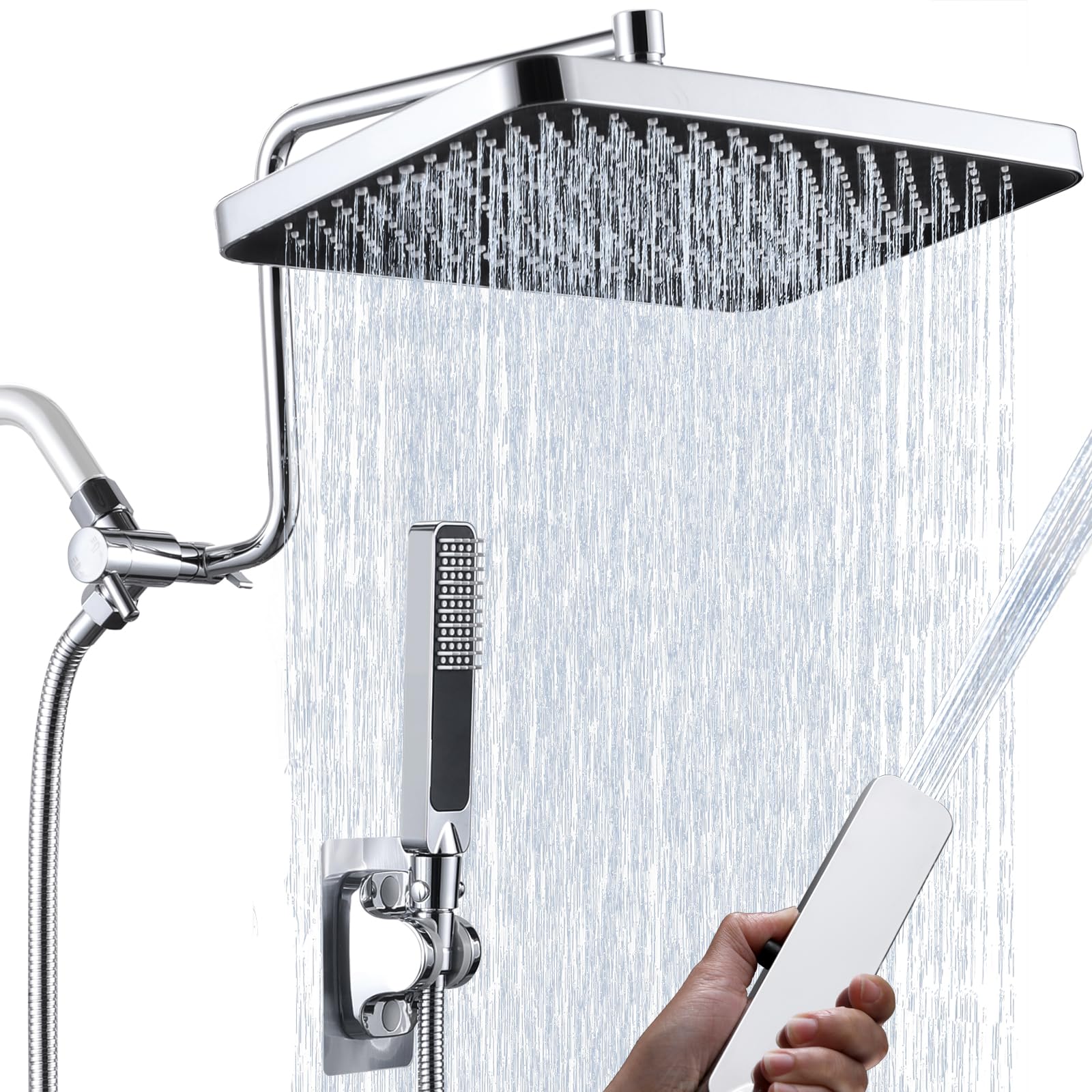 13 Inch Dual Rainfall Shower Head with Handheld Spray Combo Adjustable Extension Arm and Extra Long Hose in Polished Chrome