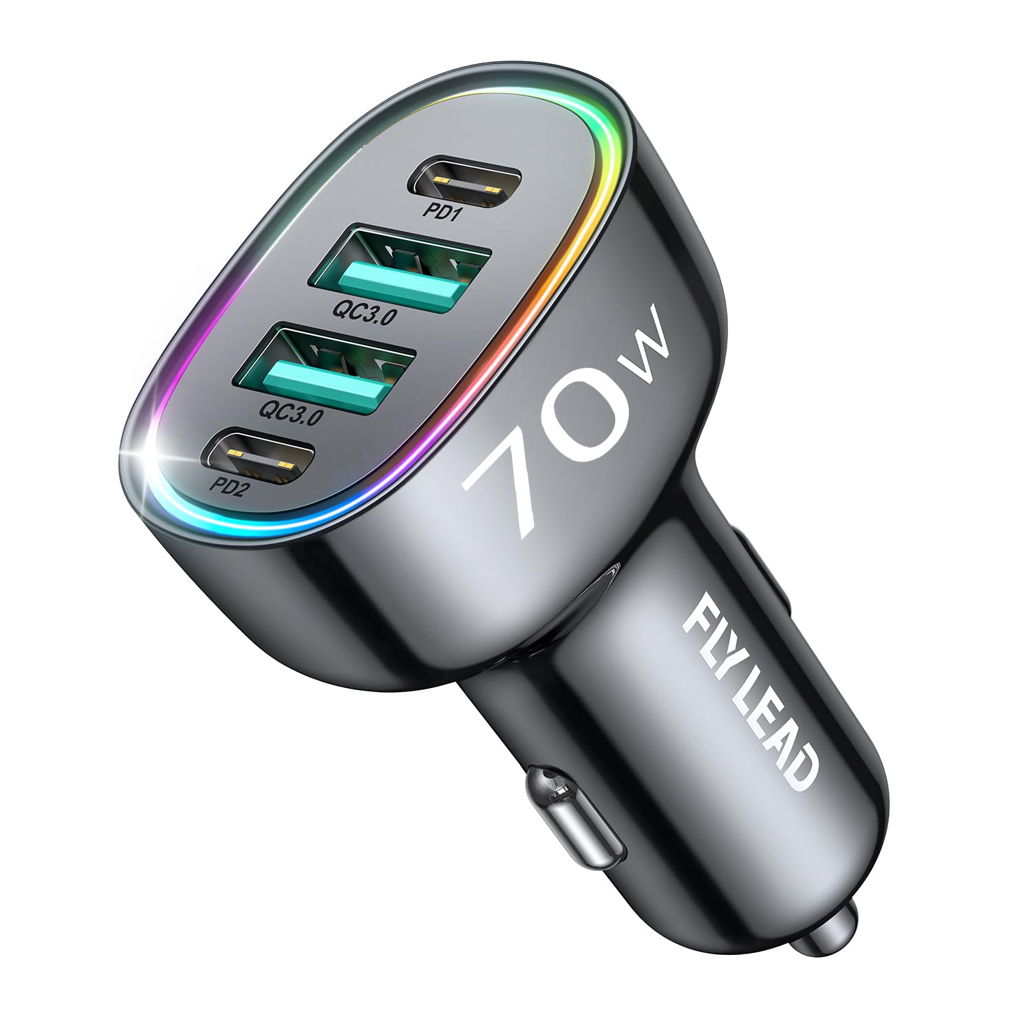 - โUpgraded 4 Port Car Charger 70W multi port charger adapter is equipped with 2 USB C ports and 2 USB A ports Kids on the back of the car will love it while traveling Because they wont have to fight for the problem who can use the cellphone car charger firs