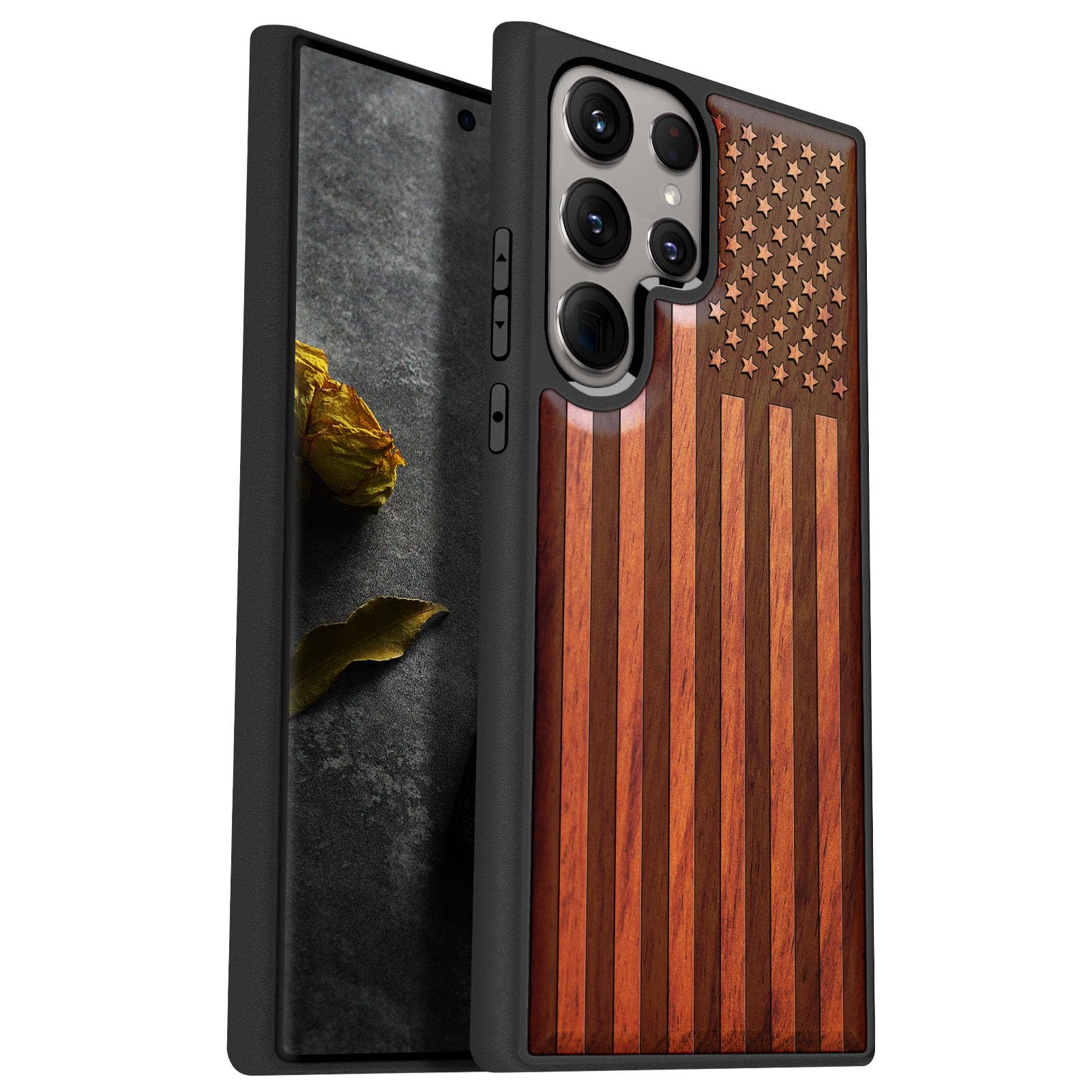 Carveit Wood Case for Galaxy S24 Ultra 2024 Natural Wood and Black Soft TPU Shockproof Protective Cover Compatible with Samsung S24 Ultra