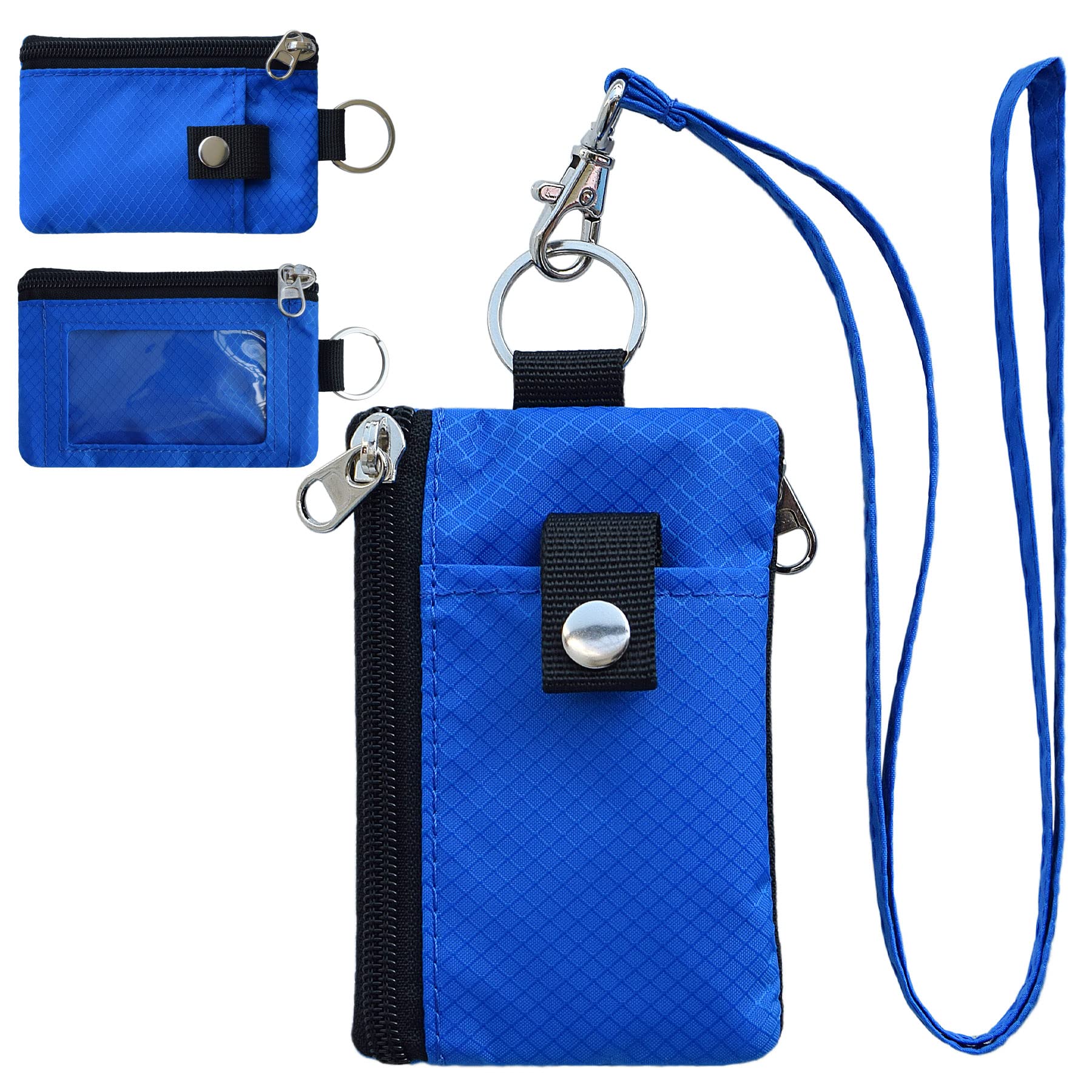 CHENSPRX Minimalist RFID Blocking Small Wallet with ID Window Water Resistant Zip Case for Cards Cash Travel for Women and Men Blue