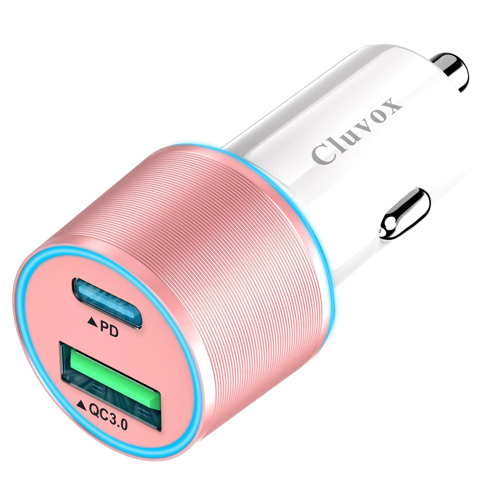 Cluvox 20W Dual USB Car Charger Adapter Fast Charge for iPhone iPad Google Pixel Samsung Pink