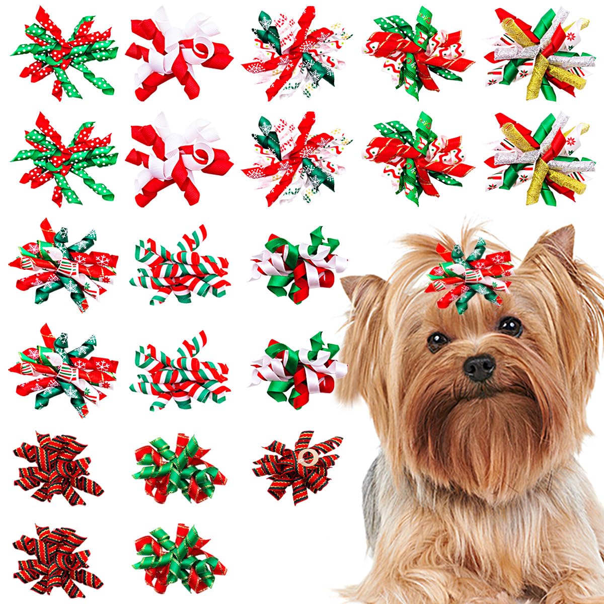 Curly Dog Hair Bows 20pcs for Small Medium Dogs with Rubber Bands Spiral Puppy Swirl Topknot Cat Festival Accessories Gift