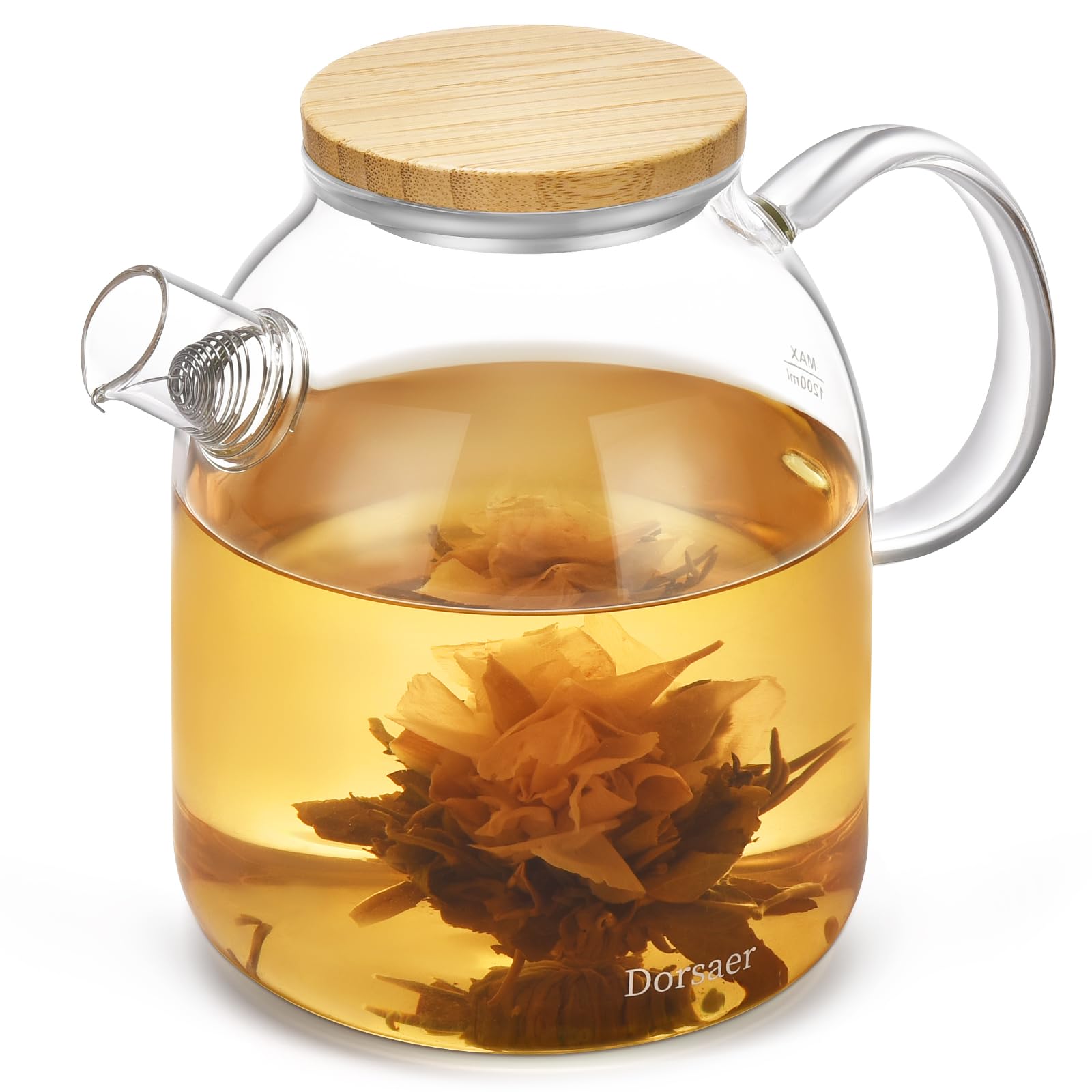 Dorsaer 1500ml Glass Teapot with Bamboo Lid Stovetop Safe Borosilicate Glass Kettle for Blooming Fruit Loose Leaf Tea