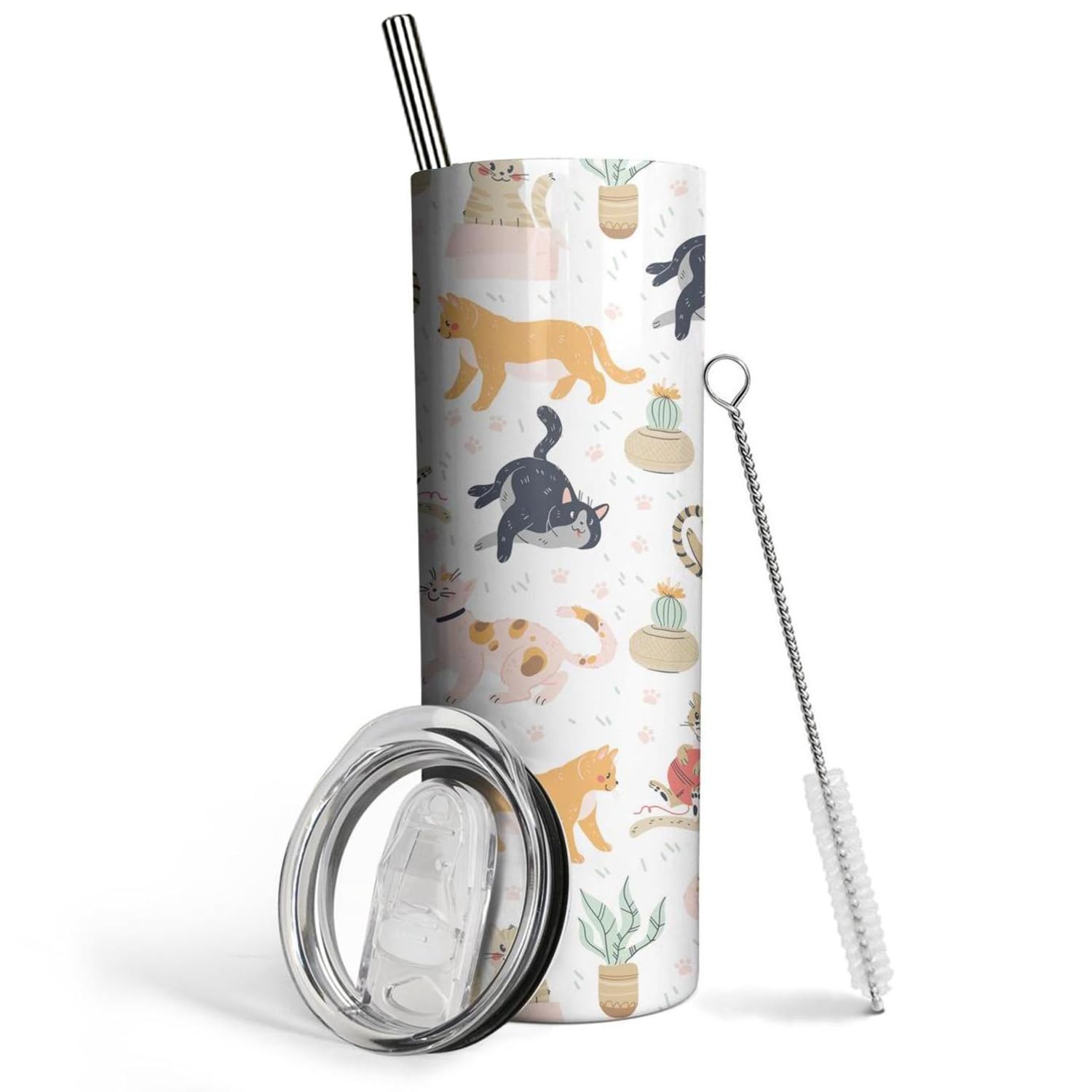 Heqianco 20oz Cat Tumbler with Lid and Straw Insulated Stainless Steel Cat Gifts for Cat Lovers and Cat Moms Travel Coffee Mug