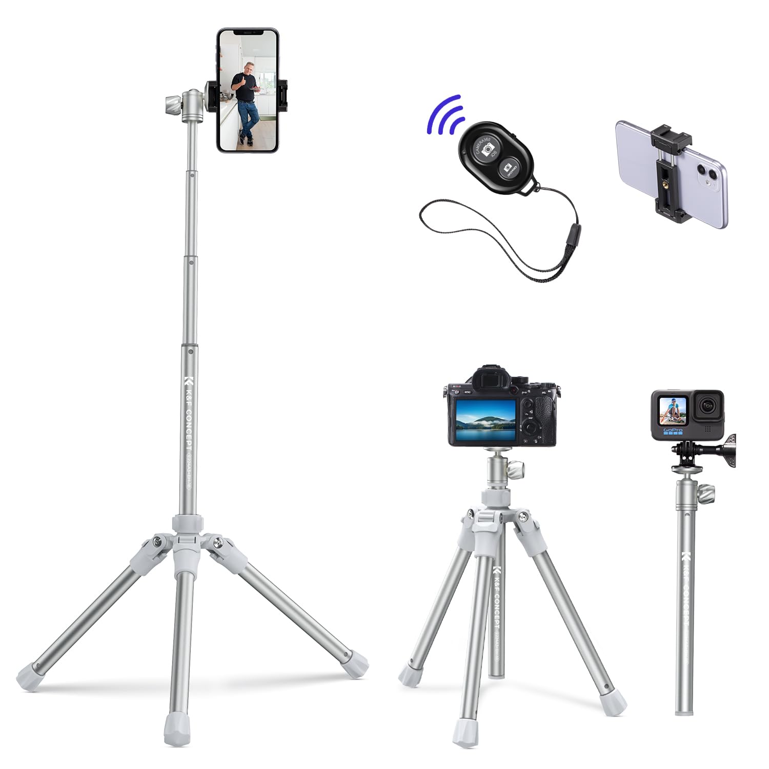 KF Concept 67 Inch Lightweight Portable Tripod and Selfie Stick with Phone Holder and Remote for DSLR and Smartphones