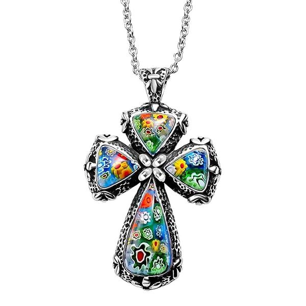 | #1 | COLORFUL CROSS NECKLACE FOR WOMEN The colorful necklace for women is a stunning piece of cross jewelry women that features intricate Murano Style millefiori glass adorned with beautiful flower patterns |