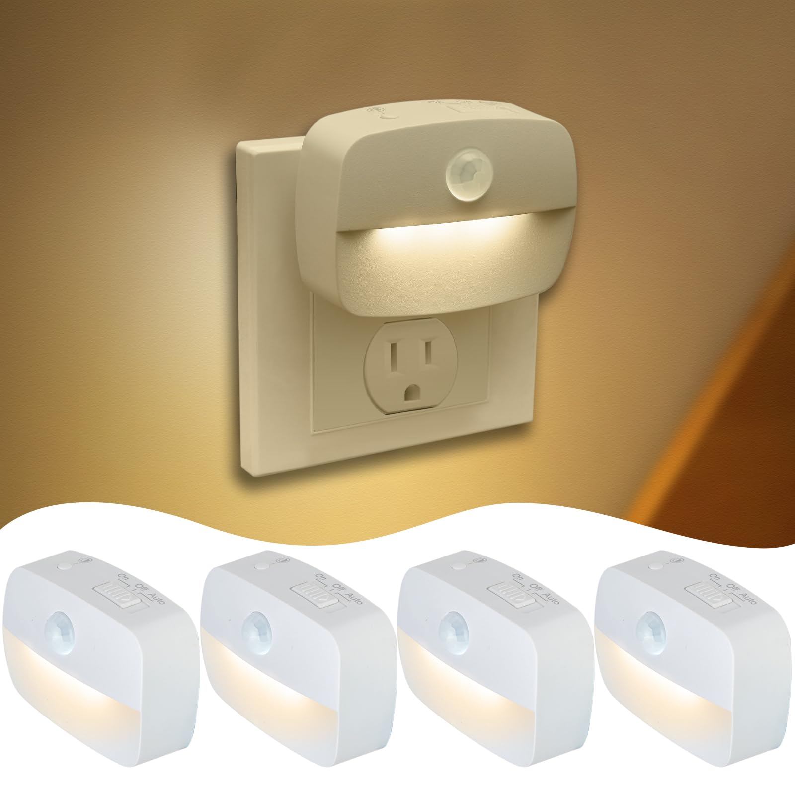 - โOptical Design with MultiColor LightingThis night lights plug into wall comes in three colorswarm white 3000Kmixed light 5000Kand cool white 6500KMotion sensor night lights plug into wall has a stepless dimming range of 1060lmsensor lights indoorUshaped l