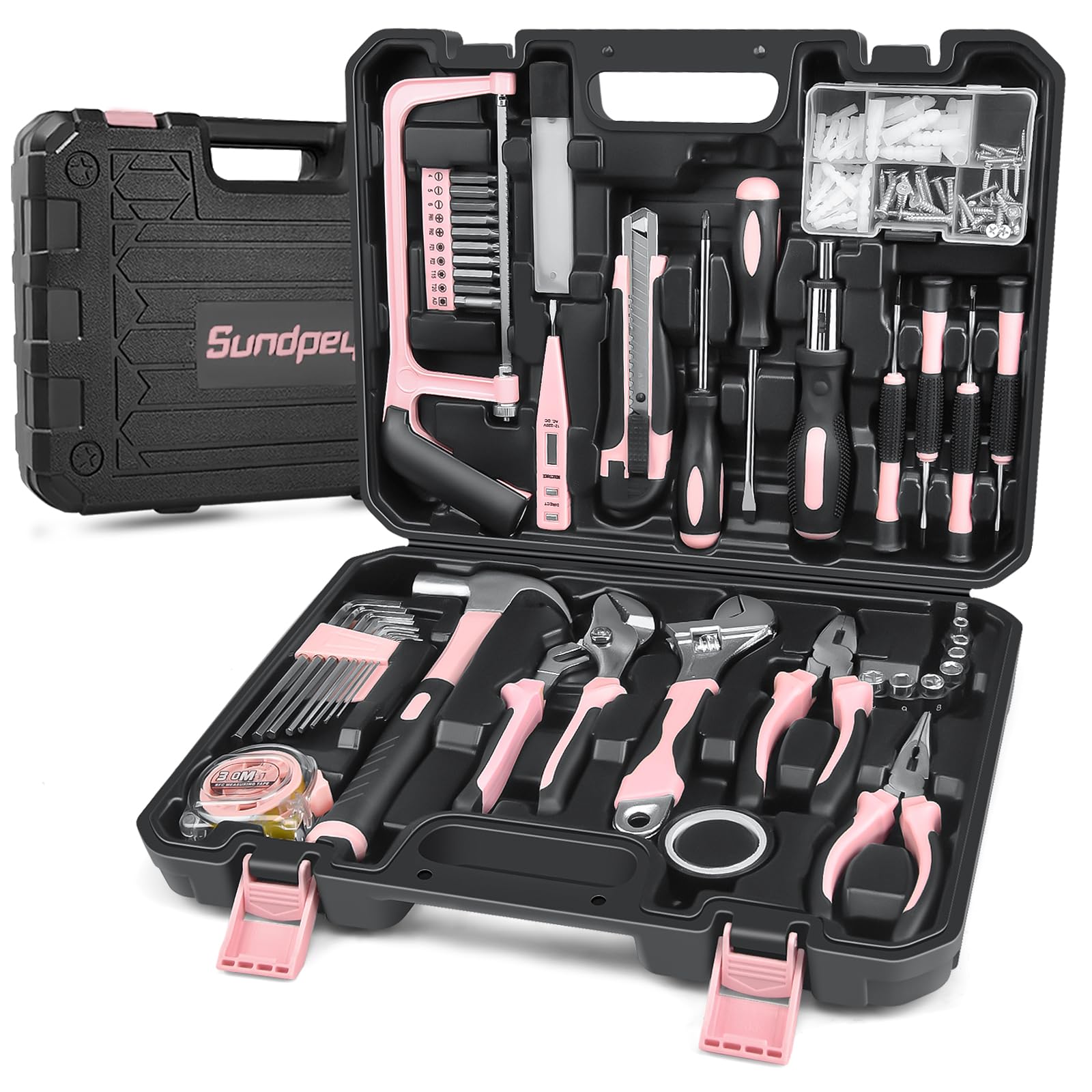 Sundpey Home Tool Kit 148 Pieces Essential Hand Repair Set with Case Screwdriver Pliers Wrench Voltage Tester for Women