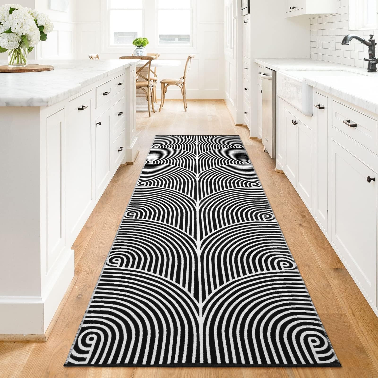 Tiffasea Kitchen Rugs 2.6x8 Machine Washable Runner Large Laundry Room Extra Long Hallway Cotton Woven Black White Outdoor Carpet